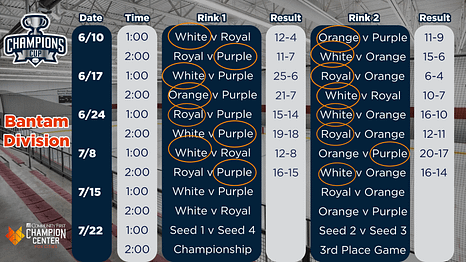 Mites/Squirts will play 8AM-12PM & PW/Bantams will play 11AM-3PM