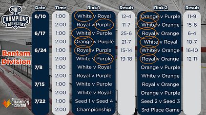 Mites/Squirts will play 8AM-12PM & PW/Bantams will play 11AM-3PM